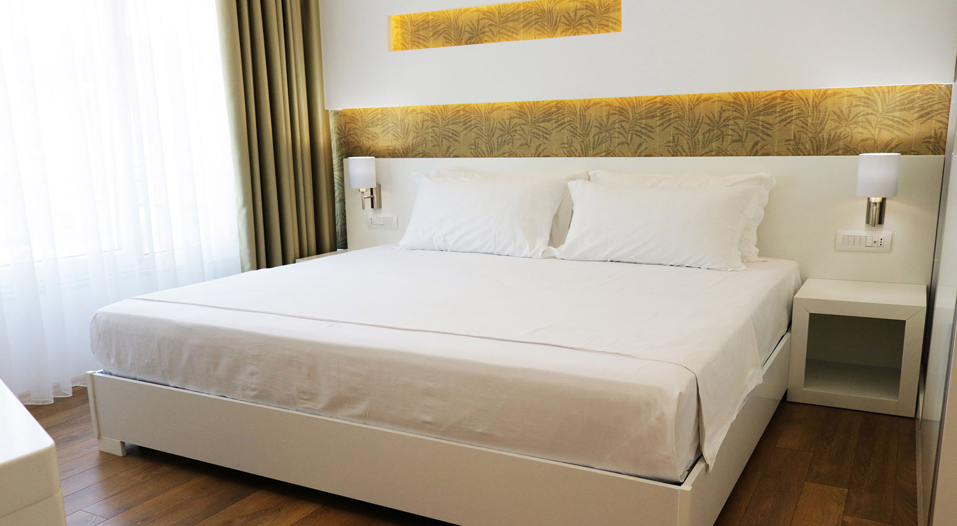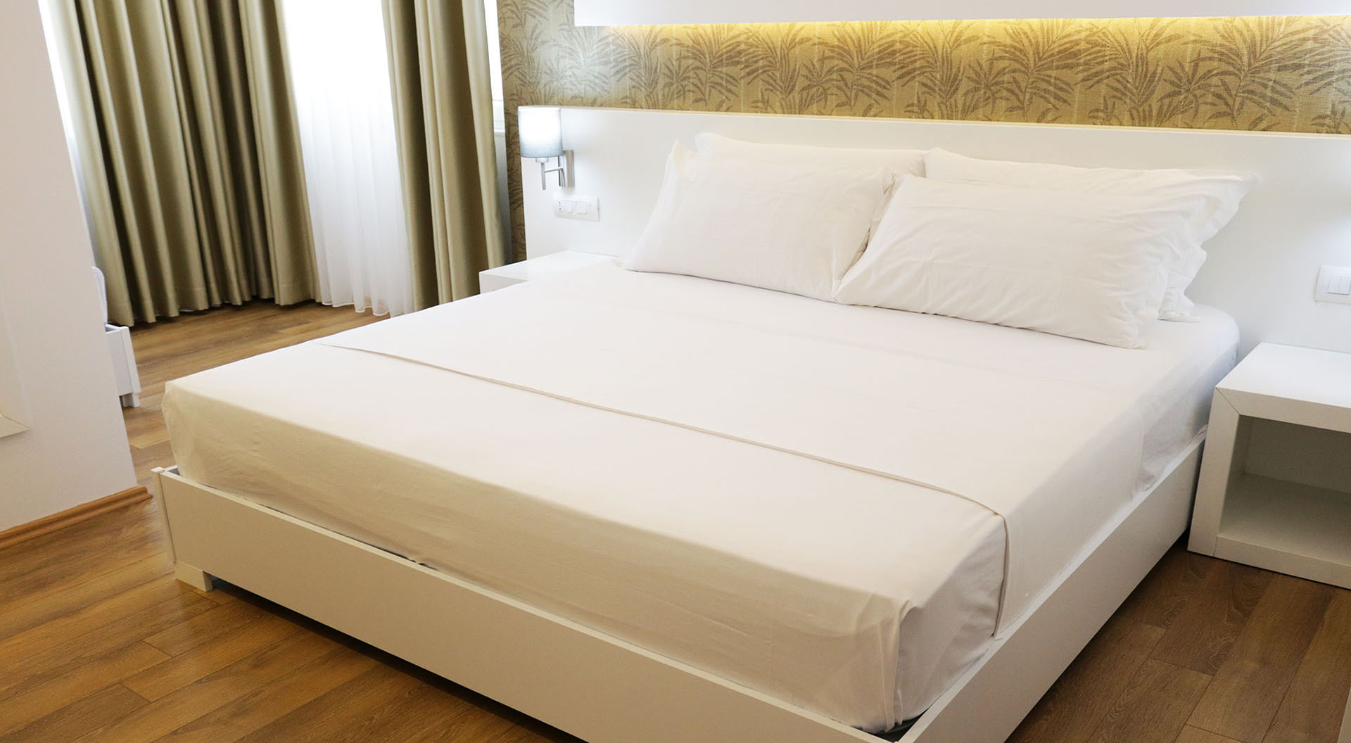 Modern rooms design, ideal for comfortable business stays. The rooms are furnished in a modern style where the white color prevails. 2bedrooms + balcony, top floor.