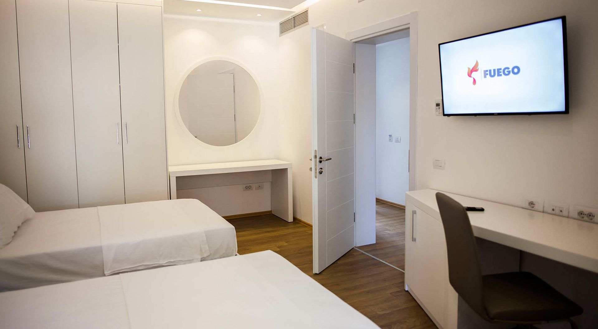Apartament për udhëtime të biznesit dhe gjithashtu ideale për të shijuar pushimet me të gjithë familjen. Dhomat janë të mobiluara në një stil modern ku mbizotëron ngjyra e bardhë. 2 dhoma + ballkon.